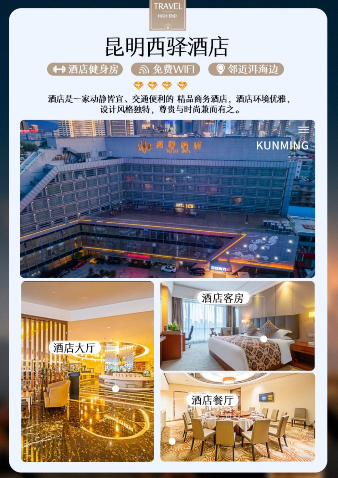 3、如您当日抵昆时间较早,可将行李放在入住酒店(贵重物品请自行保管好)后,自由活动......可以去昆明随便逛逛,尝尝当地小吃、感受下当地人的生活。