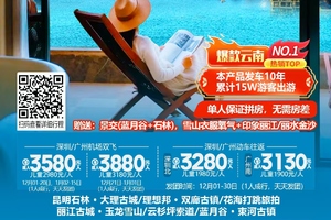 请您根据机票起飞时间提前2小时自行乘车到深圳/广州机场,凭身份证领取登机牌,之后前往美丽的春城昆明,后接机入住昆明酒店。让我们一起展开吃吃吃、赏赏赏、拍拍拍、逛逛逛、游游游、泡泡泡、买买买的度假模式吧。