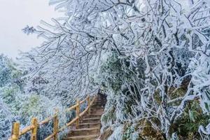 金子山素有“广东玉龙雪山”之称的金子山,地处粤北地区,因最高海拔达1417米一到冬天气温低至几度,是广东少有看得到雪景的地方!如果气温再下降金子山就可能飘起细雪、出现冰凌,很快就会切换成一个白色的童话世界,形成一幅冰封大山的奇观 ,十分吸睛。山腰中,竹林里,台阶间,树枝上或许就会积满冰凌、冰花,悬吊着许多冰挂,山舞银蛇,银装素裹,呈现一幅令人陶醉的雪景图!