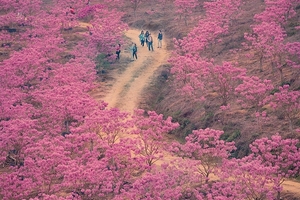 14:00 抵达紫花风铃规景区,34万平方米的紫花风铃,满树铃铛、姹紫千红的紫花风铃盛开,构成一幅美如童话的仙境,会让你深深的感到震撼!摄影家的天堂!