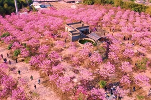 远远望去,像一片粉嫩海洋,蔚为壮观吸引游客咔嚓拍起来