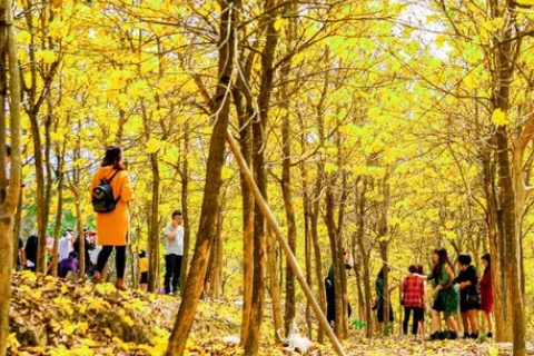 1万多株黄花风铃,步入林中,只见黄灿灿一片,树下五彩缤纷,满树黄花不见一片叶子,真正是满城尽带黄金甲,