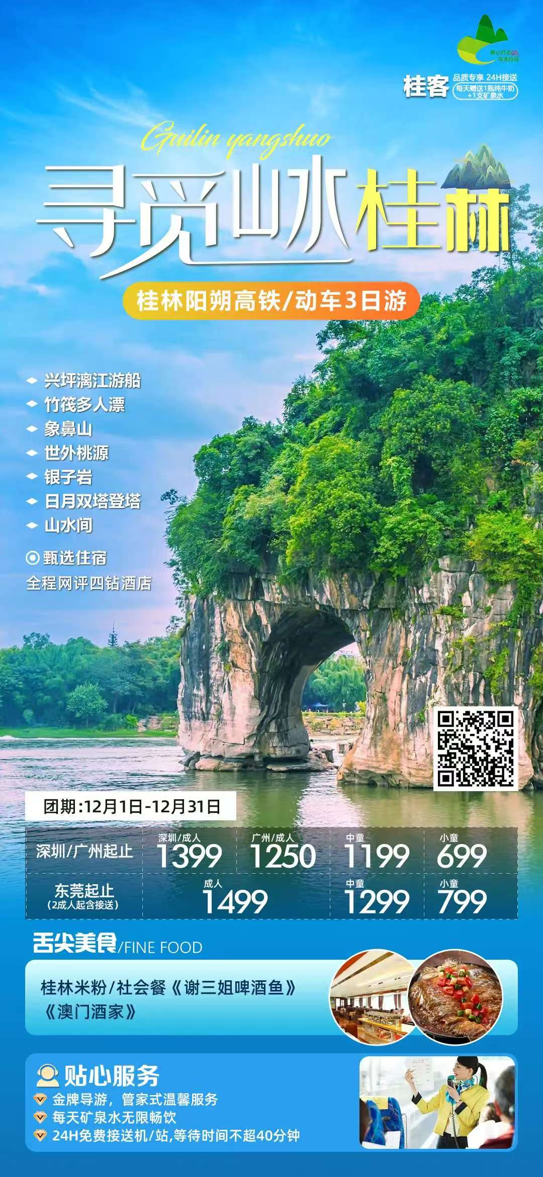 【交 通】深圳/广州-桂林往返二等座高铁票、跟团游期间当地用车费用 。