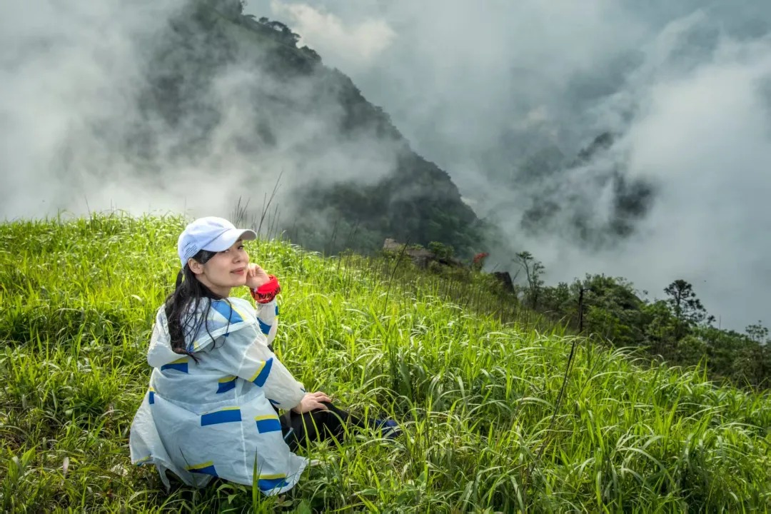 满眼翠绿的高山草甸,云雾飘渺的山巅