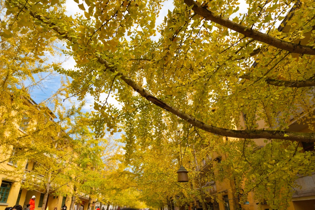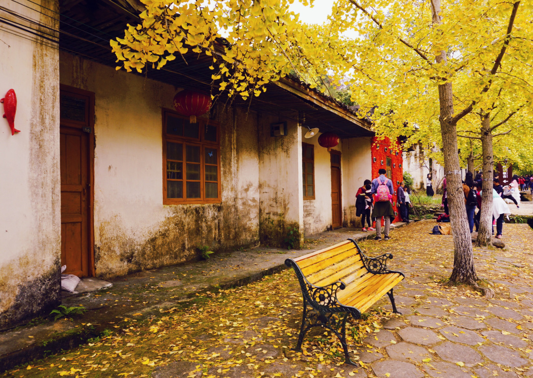 古朴的乡村街道、美如画的银杏叶