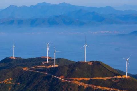 惠州惠东境内,盐洲岛有座风景秀丽的观音山,与碧海、蓝天、海滩、湿地、原生态的乡村构成一幅人间美景。近年,观音山建设了几十座风力发电风车。苍山翠林中高耸起—座座银白色风车,为小岛增添无限风光。风车扬起巨大长臂,勇士般守护着盐洲岛。观音山风车成为盐洲岛亮丽景观,也被誉为惠州最美风车山。观音山风车又源源不断输入清洁能源,造福国人,令人叹服!