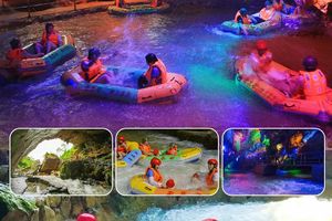 【老虎谷溶洞欢乐漂】是非常适合男女老少参与的项目,漂流河道依溪流淌,水质清澈,为一级地表饮用水,全程有2.8公里,穿上画有老虎斑纹的救生衣,戴上画有老虎卡通形象的头盔,跟孩子坐上画有老虎卡通形象的橡皮艇,享受漂流刺激与清凉,相互嘻哈戏水打仗,欢声阵阵,岸上游人也被吸引,投以都要漂一下的眼光;随艇探寻七彩溶洞九重天,风景这边独好,唯美钟乳石,漏皱透秀的英石,在匠心独具的彩灯照射衬托下,在漂流橡皮艇上穿越一重又一重,让人惊叹的大自然艺术殿堂。