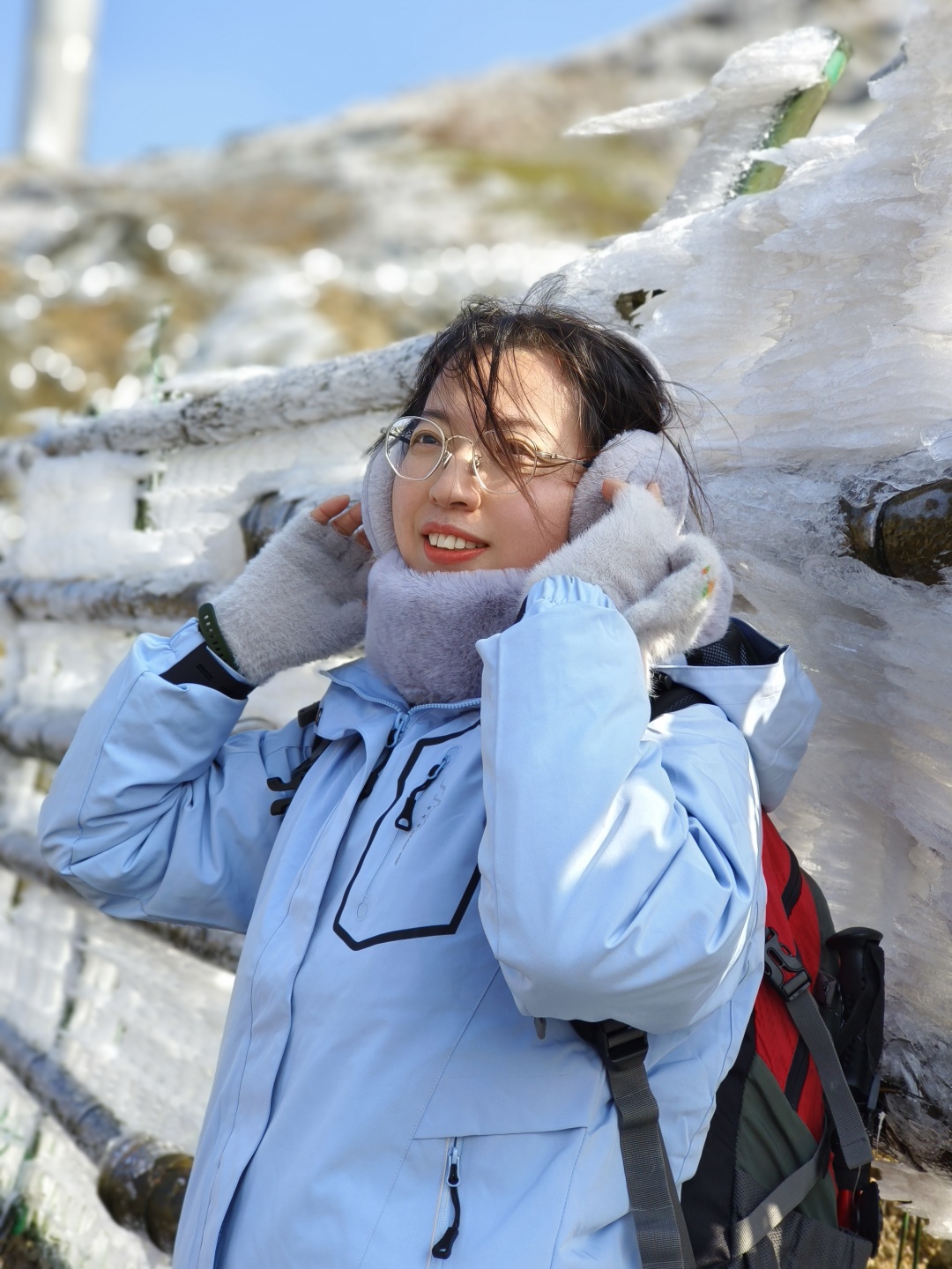 景区游览:为环山道路赏景,微微爬坡,正常两小时即可走到山顶,中途能看到雾凇冰挂。