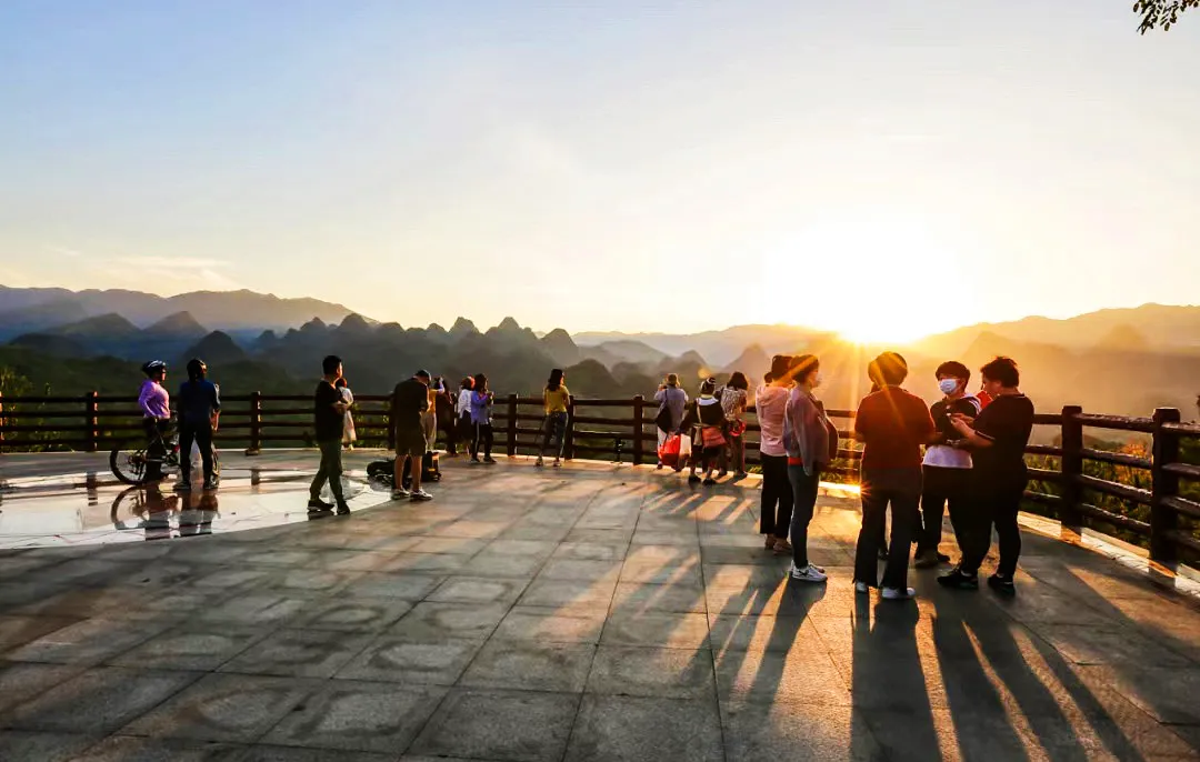 万山朝王外观---又称“八百罗汉”,计有石山1000余座,座座背朝东北,面朝西南,组成群山俯首,恭躬油岭“盘古王山”称臣的壮观画面。