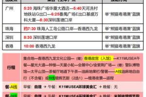 温馨提示:请务必按约定时间和地点上车,尖沙咀无固定停车点,旅游巴士即停即走,若