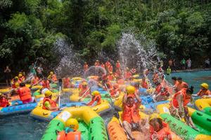 (免费升级全程漂)(全程约一个半小时)全长5.2公里,落差达236米,共137处,创下了广东单项漂流长度最长、回旋最多、落差最大三项纪录,被誉为中国漂流的巅峰之作。