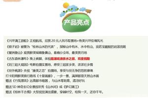 (出发时间根据演出实际情况而定,演出时间随机安排 )赠送观看【桂林千古情】(游览时间约60分钟,赠送项目,不游不退)它浓缩了桂林万年的历史与民俗,是桂林文化的灵魂。演出涵盖了《千古灵渠》、《漓江恋歌》、《寻找刘三姐》等极具地方特色的节目,运用先进的声、光、电、全息等高科技手段和舞台机械,在水陆空三维立体空间,唱响了一曲感天动地的桂林千古传奇。给我一天,还你千年!除此之外,我们还能在景区内看到不同的民族风情,感受不同的少数民族文化。这里有热情的广场舞表演,执勤的帅气小哥哥和穿着民族服装的阿妹与阿哥更是让舞蹈好看又有趣,是景区网红抖音打卡点之一哦。景区内的阳朔古村营造了独特的农耕市井生活风貌,街边还有各种杂耍表演,让人感觉十分的逗趣和新颖。夜幕降临,华灯初上,朦胧夜色下的千古情景区更是浪漫迷人。一盏盏点燃起来的灯,包裹着景区的一草一木,沿着沙滩一圈的情人港区域,是“一山一世”时空隧道,这里有一间一间的茅草小屋,每一间都是和孩子拍照的好去处。