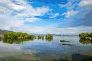 坐渔船观看视觉更佳。