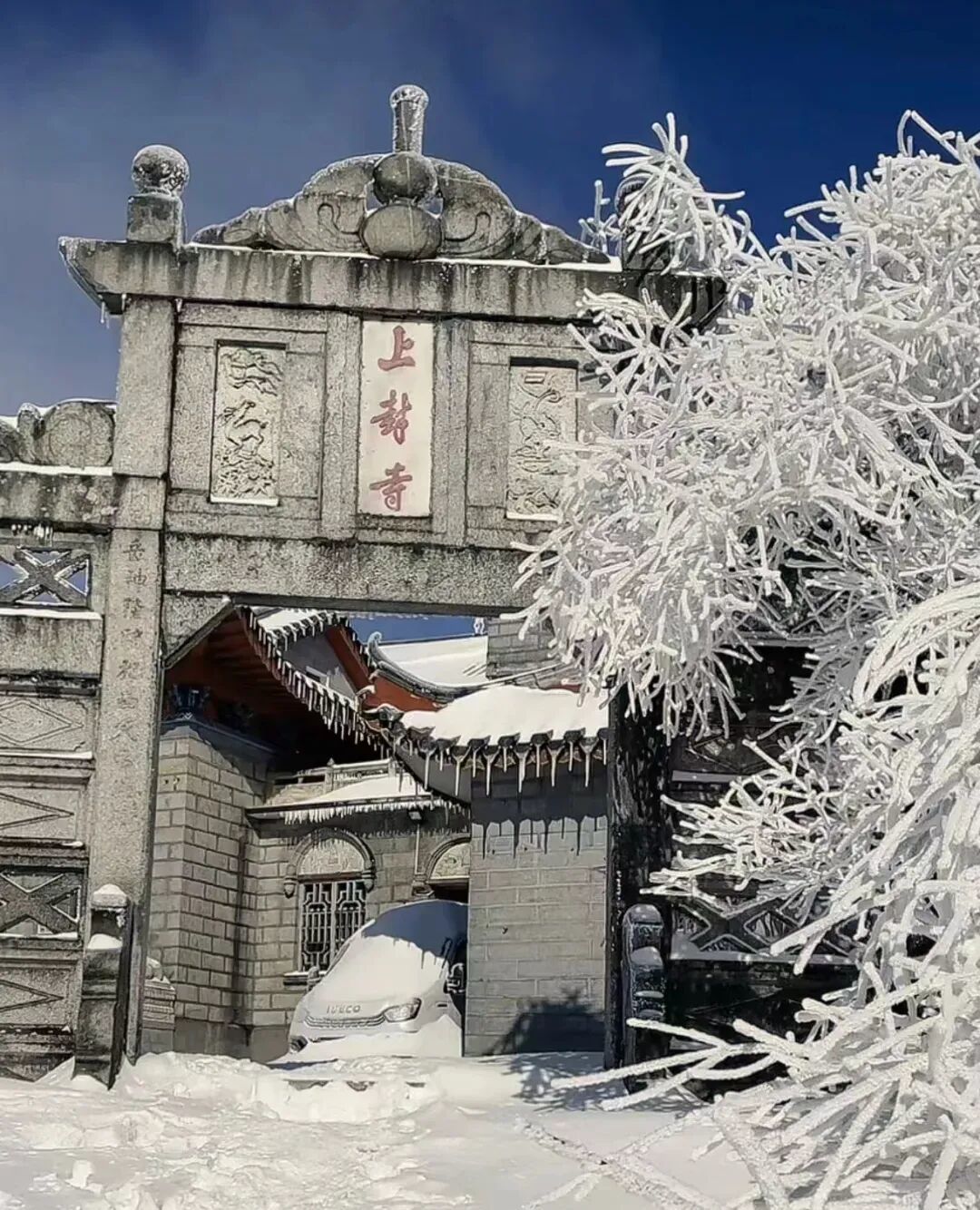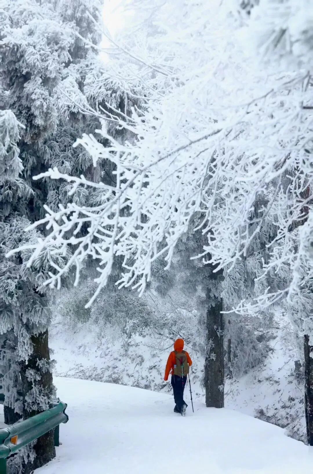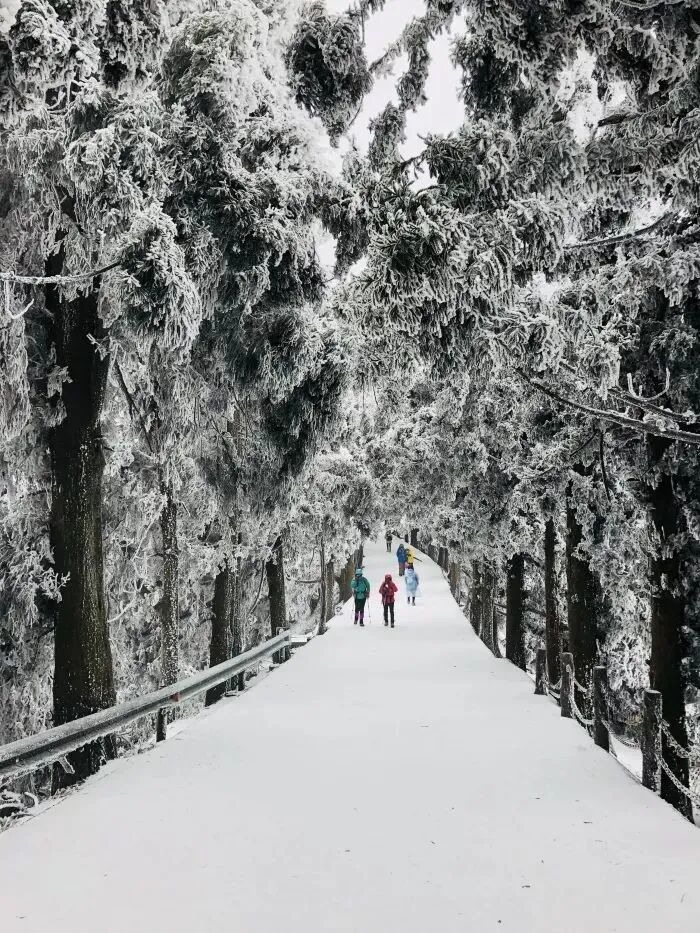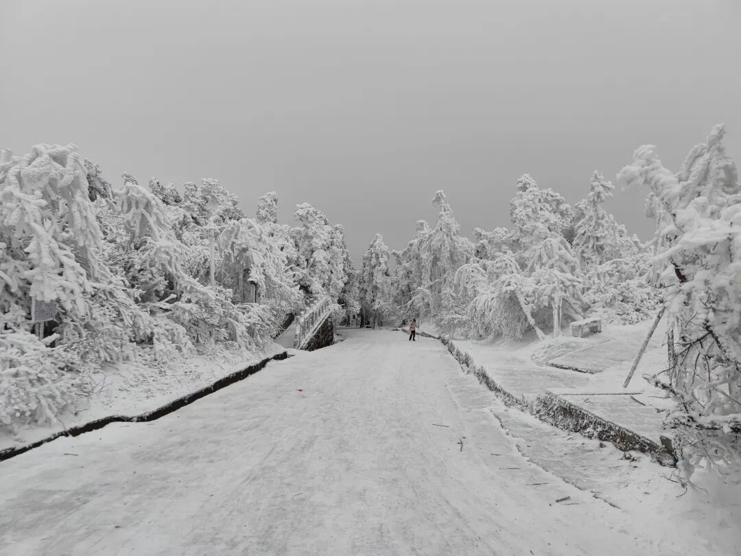 15:10 左右到达南岳衡山游客中心,领队带领大家热身后开始穿越山脊冰雪雾凇精华路线,前往半山亭或延寿亭客栈。(停车场到客栈要走约5公里,不想徒步也可以选择坐景区接驳车上山到半山亭)