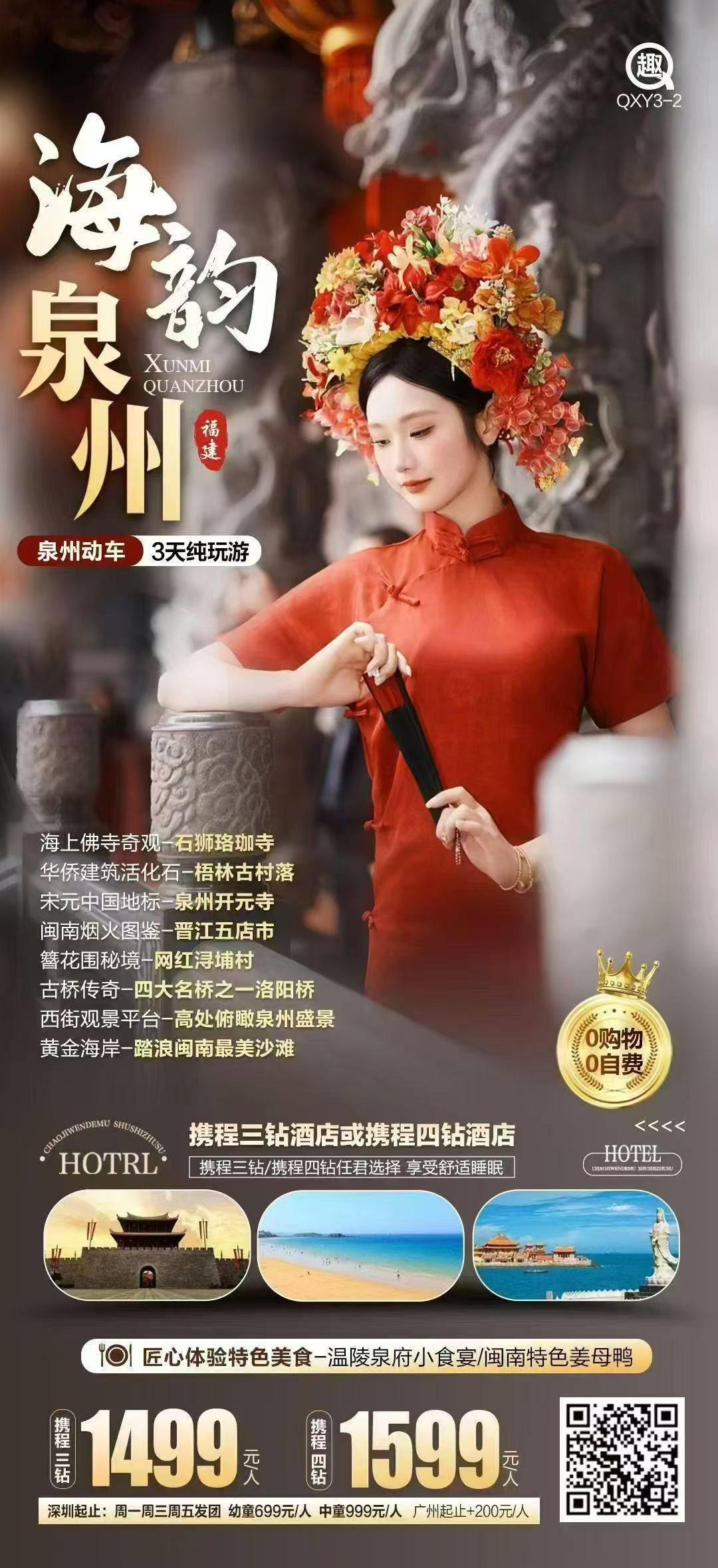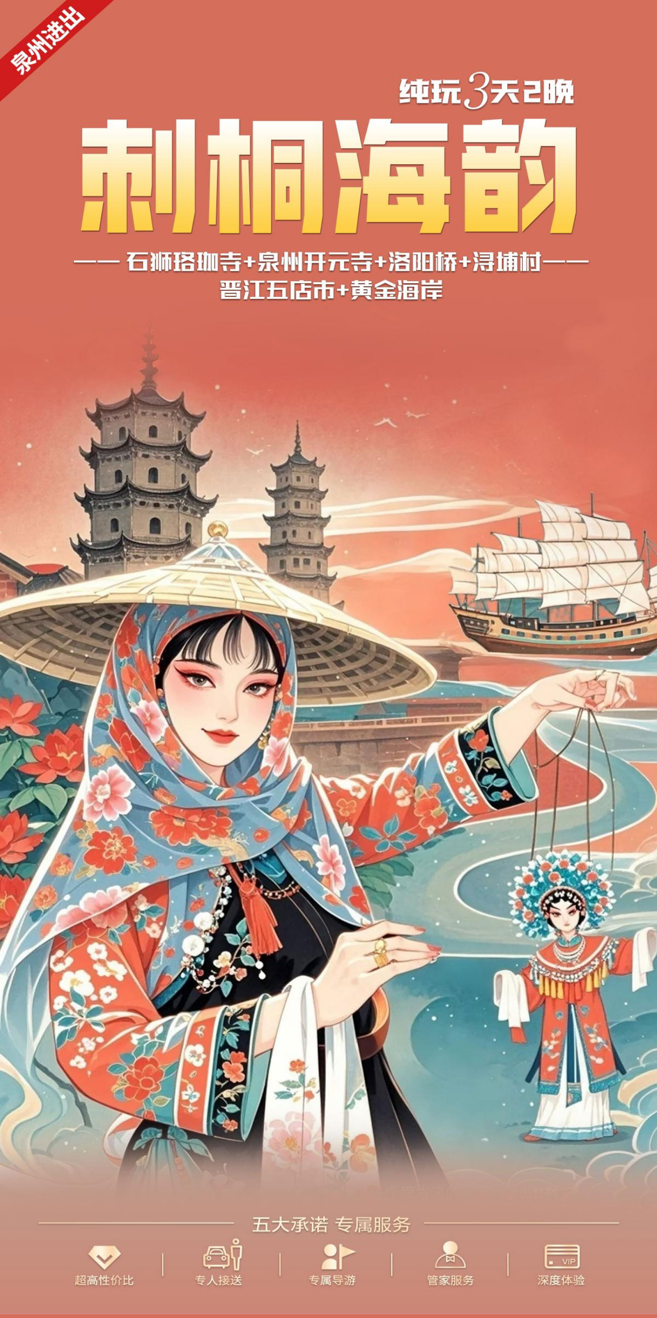 【泉州三天动车团】每周周一/周三/周五出发!海韵泉州3天游!石狮珞珈寺+泉州开元寺+洛阳桥+浔埔村+晋江五店市+黄金海岸 [复制链接]