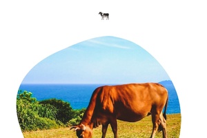 牛牛、野猪、蓝天、大海、草坪