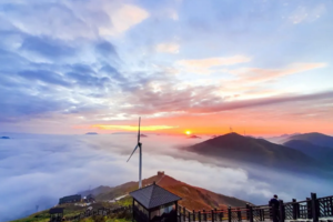 12:30 左右到达景区,拿票后乘坐景区观光车进入景区游玩,云海、竹林、风车群与你相约(天气寒冷会出现冰挂、雾凇奇观,但不敢百分百肯定)。