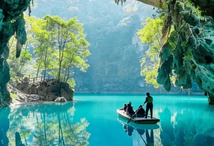 三门海,不只是一种风景,更是一次穿越地心之门。乘一叶小船,缓缓划入天坑之中,你会看见:水上的“天门”一个个打开,光影交错;