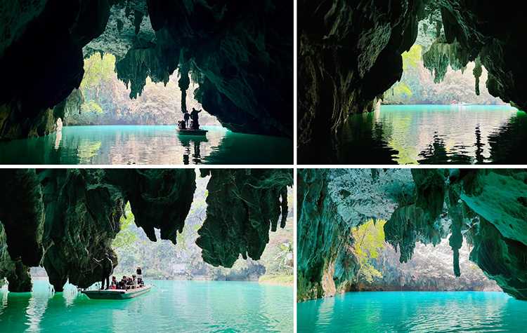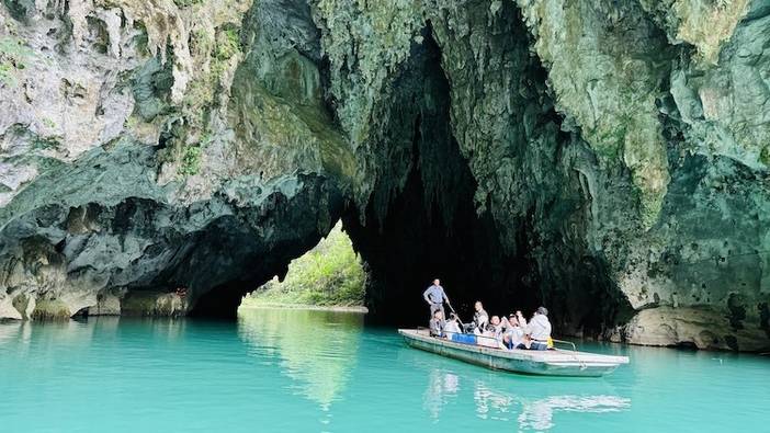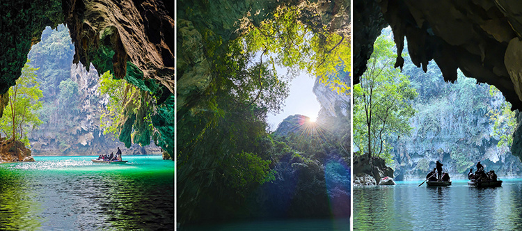 划船穿过三个天然溶洞