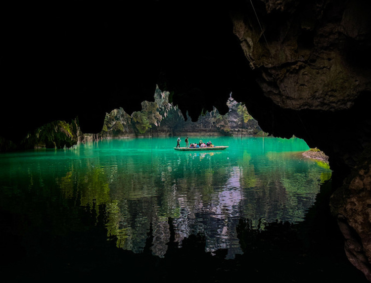 乘坐小船穿梭溶洞,光影交错超梦幻