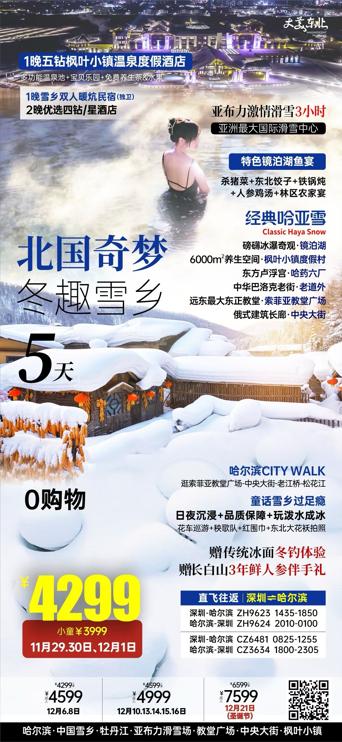 【冬趣雪乡】东北看雪玩雪推荐!深圳出发!往返机票已含!哈尔滨+雪乡+亚布力滑雪场5天4晚跟团游! [复制链接]