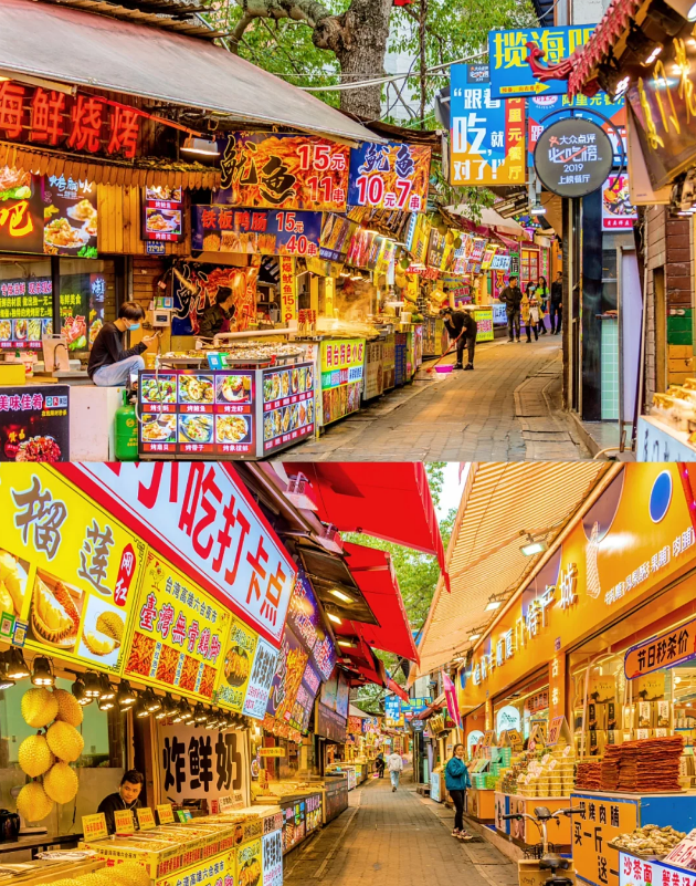 如红纪德的葱糖卷和夹饼、叶氏麻糍、黄则和花生汤、杨小贤绵绵冰、当德士鱿鱼酥和盐酥鸡、阿卿春卷、局口拌面等